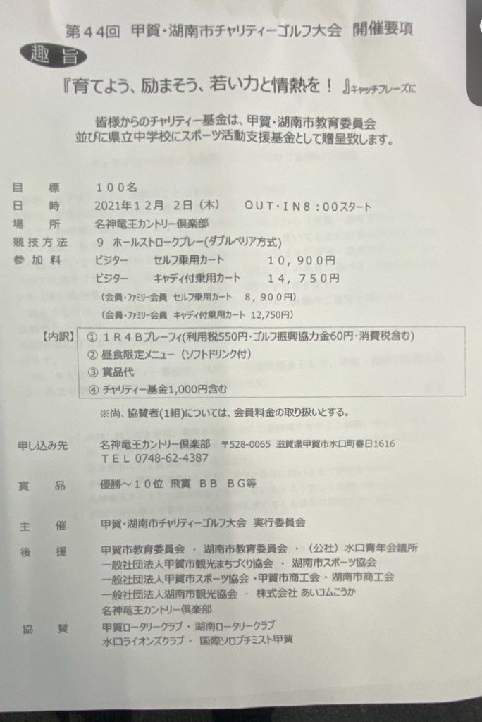 第44回甲賀・湖南市チャリティーゴルフ大会のお知らせ。